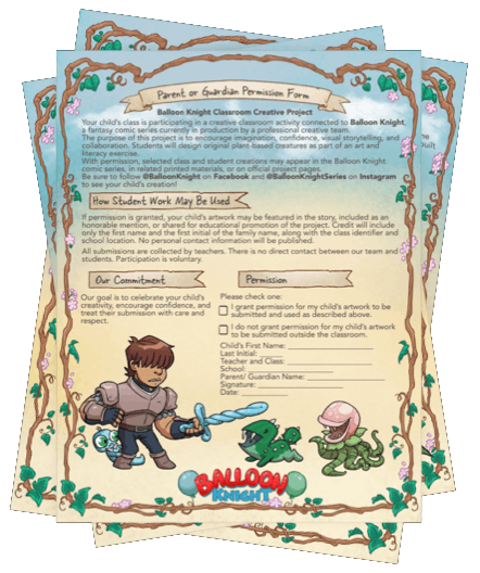 The Garden Party is a classroom activity inspired by the Balloon Knight series, where students design their own plant creatures while learning how to communicate ideas and emotions without words. Through guided discussion and drawing, students explore visual storytelling, just like Ry in the series, before creating and naming their own original monsters.